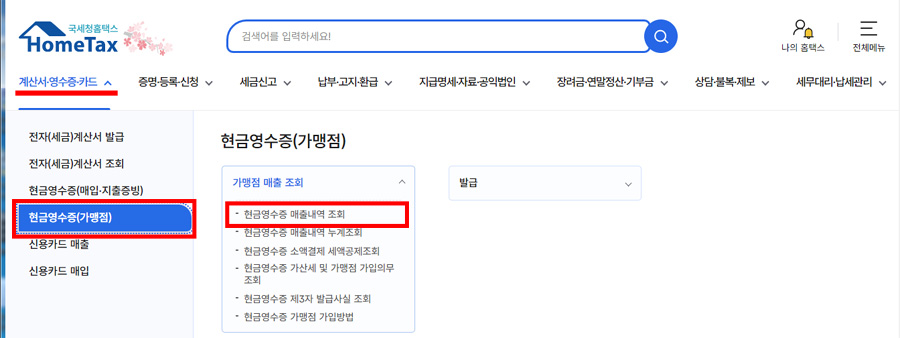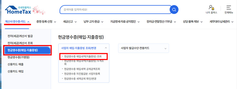 . °è»ê¼.¿µ¼öÁõ.Ä«µå -> Çö±Ý¿µ¼öÁõ(¸ÅÀÔ.ÁöÃâÁõºù) -> »ç¾÷ÀÚ¸ÅÀÔ.ÁöÃâÁõºù Á¶È¸/º¯°æ ->Çö±Ý¿µ¼öÁõ ¸ÅÀÔ³»¿ª(ÁöÃâÁõºù) Á¶È¸