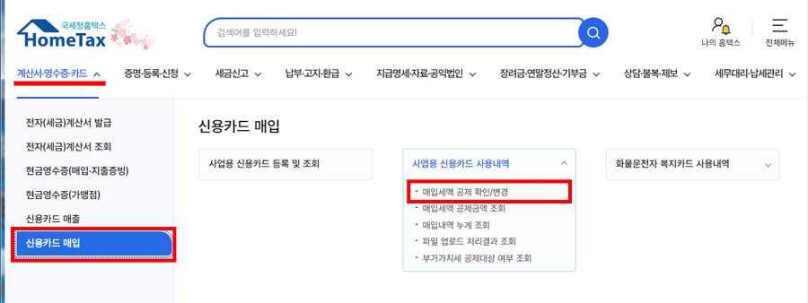 . °è»ê¼.¿µ¼öÁõ.Ä«µå -> ½Å¿ëÄ«µå ¸ÅÀÔ -> »ç¾÷¿ë ½Å¿ëÄ«µå »ç¿ë³»¿ª -> ¸ÅÀÔ¼¼¾× °øÁ¦ È®ÀÎ/º¯°æ